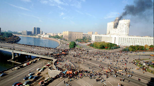 Как ему аплодировали, когда в 1993 году танки с нанятыми за деньги экипажами громили в центре Москвы приведший его к власти парламент, а его депутатов едва не вырезали: это называли на Западе "апофеозом демократии". Поскольку парламентарии, дескать, оказались "националистами" и "фашистами", когда осознали, что творит ельцинская власть. Проявленная ею тогда решительность — при всей гнусности того, что ею творилось и чистых помыслах её оппонентов — уберегла тогда Россию от окончательного развала. Такое вообще возможно только у нас.