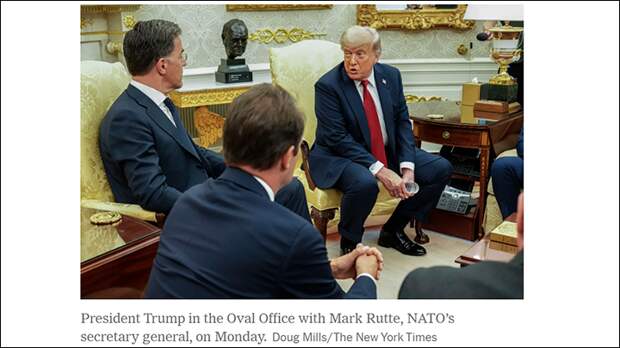 Дональд Трамп и Марк Рютте на встрече в Овальном кабинете Белого дома. Скриншот страницы сайта nytimes.com