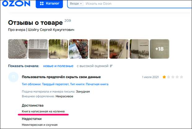 Отзыв к книге "Про вчера". Скриншот Озон.ру