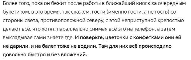 Он-то думал, что всё это она организовала для того, чтобы привлечь его внимание, с последующим первым шагом с его стороны. А дальше бы у них получилось знакомство. По сути, он прав. Но лишь частично. Привлечь внимание и первый шаг – это да. Но не более.