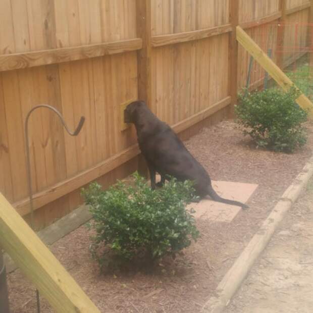 «Сосед разрешил сделать дырку в заборе, чтобы моя собака могла смотреть к нему во двор и не скучать»