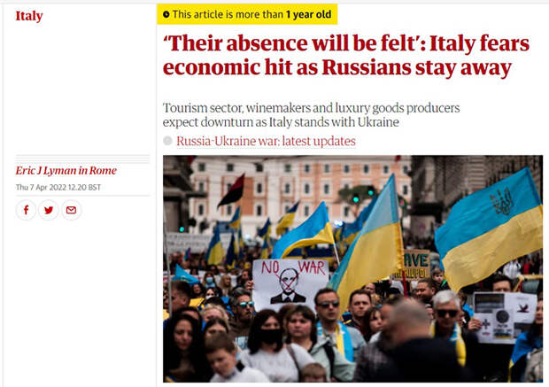 Италия опасается экономического удара, поскольку русские держатся подальше. Туристический сектор, виноделы и производители предметов роскоши ожидают спада, поскольку Италия поддерживает Украину.