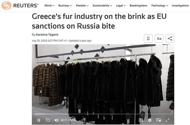 Меховая промышленность Греции на грани банкротства из-за санкций ЕС в отношении России